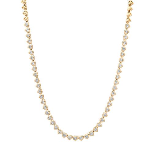 Mixed Sapphire & Diamond Bezel Set Heart Tennis Necklace -